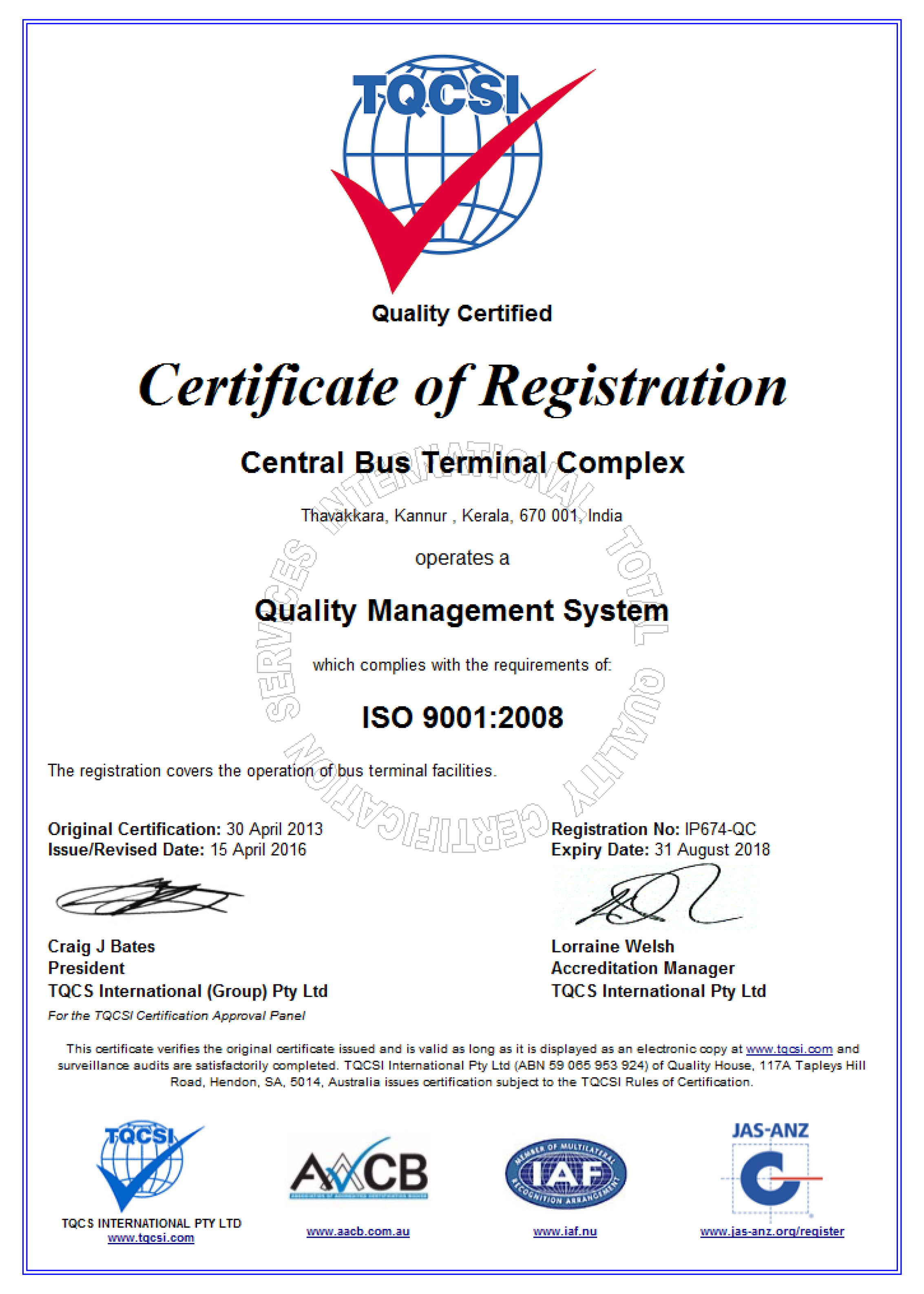 Realising that the Municipal Bus stand has reached a saturation level, the Kannur Municipality ensured to develop a new bus terminal. With a view to develop a Bus Terminal with most modern facilities without any financial commitment, Municipality decided to develop the same with private participation under Built Operate and Transfer system. The Central Bus Terminal Complex, Thavakkara, Kannur developed by K.K. Builders for Kannur municipality under B.O.T is the first of its kind in India. K.K. Builders is a Kannur based leading Civil Engineering Contractors in Kerala having quality and environmental certifications ISO 9001:2008 and ISO 14001:2004 respectively. The firm has successfully executed infrastructural projects of varied nature and magnitude under Kerala PWD, Indian Railways, Co-operative sector and own projects. The timely execution of the projects without compromising on quality has made the firm a leader in the industry. The successful running of the Central Bus Terminal Complex, Kannur is a testimony to their technical and managerial expertise as well as the commitment towards the society. The Bus Terminal is developed on 6.45 acres of land owned by Municipality in accordance with the Concession Agreement between Kannur Municipality and K.K. Builders dated 27.10.2004. The entire physical infrastructure is developed by the Concessionaire, i.e., K.K. Builders. K.K. Builders shall be operating the Bus Terminal for a period 29 Years and 3 Months from the date of agreement at the end of which the facility, as it is, shall be transferred to the Kannur Municipality. The Bus Terminal is a total shift from the typical concept of a bus stand in terms of its architectural design, construction, maintenance and facilities provided. In addition to routine facilities like public toilets, cloak rooms etc, the Central Bus Terminal has various additional facilities to its credit like purified drinking water, lodging and dormitory with separate dormitory for ladies, electronic display boards displaying the bus routes and timings, maps showing distance to various destinations from the terminal, announcement counter announcing the names, destinations and timings of the buses, well maintained waiting area for travelers with a provision for around 100 chairs, ample parking space with 53 bus bays, separate areas for idle bus parking, private parking and auto and taxi parking, 24 hour power backup, round-the-clock security, A.T.M. counters etc. The project also has three commercial blocks, consisting of exclusive outlets of various brands, a hyper market etc making it a shopping hub of Kannur. The project also has a hotel block housing a three star hotel. In short, the terminal has all facilities to provide the best experience to the travelers as well as all class of shoppers arriving at the terminal with an investment of about Rs.350 million. At the time of executing the Concession Agreement, the Concessionaire has already made a lump sum payment of Rs. 4 million as project development fee towards the initial expenses of the Municipality. Moreover, to compensate the loss of revenue received as entry fee from the buses from the old bus stand, the Municipality shall be receiving an annuity fee of Rs. 10 million every year without any risk of maintaining the bus terminal. The Municipality is also receiving huge amount of money in the form of license fee for trade licenses from the shop owners in the terminal. Through this project the public arriving at the terminal is able to experience facilities that are never expected at a bus terminal. Finally at the end of the concession period, Municipality shall own a bus terminal worth more than around 5000 million without any financial burden with the provision of best facilities to the passengers. Eminent personalities from different spheres of life such as ministers, officials etc. who visited the project have unanimously opined that the project is a role model for other Municipalities.
